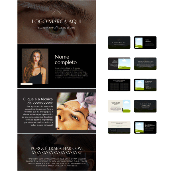 Template Canva 100% editável para profissionais da beleza. Profissionalize a apresentação do seu curso e atraia mais alunas e agilize seu processo de venda. Acesso imediato.